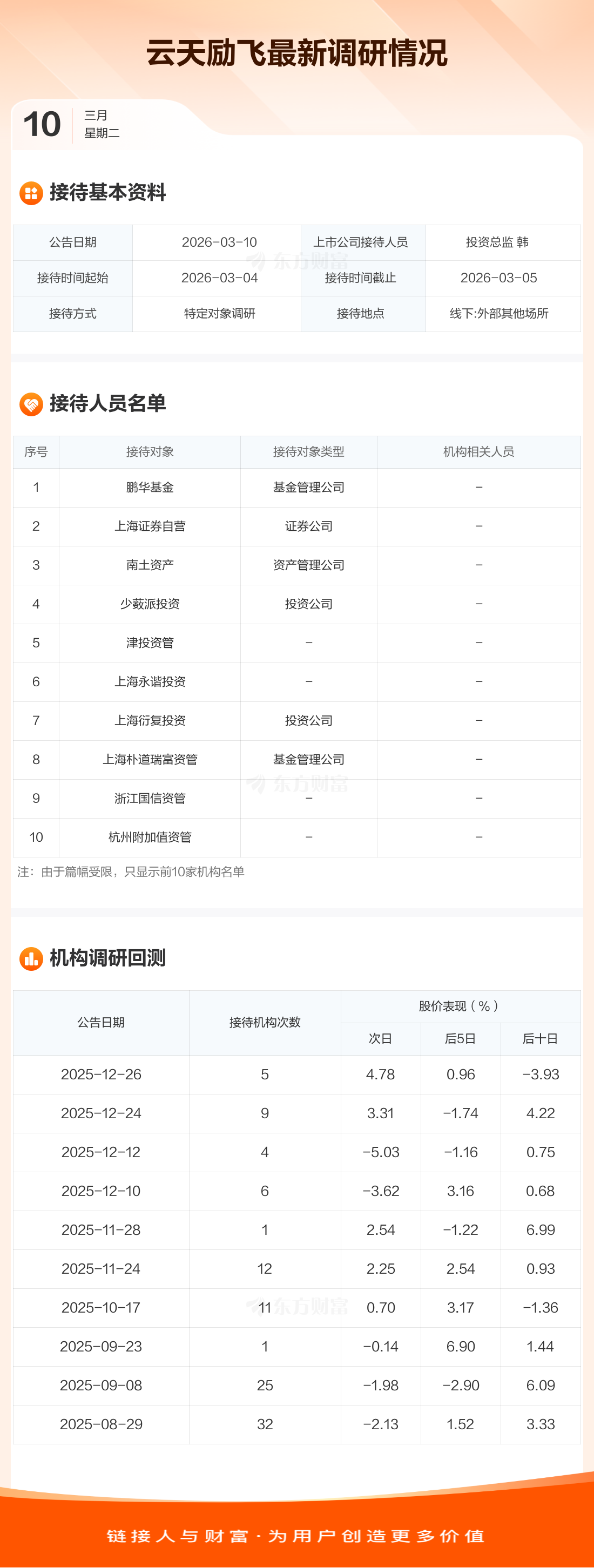 云天励飞3月10日公告称,3月4日至3月5日接待鹏华基金等28家机构调研。接待人员包括投资总监 韩暘。