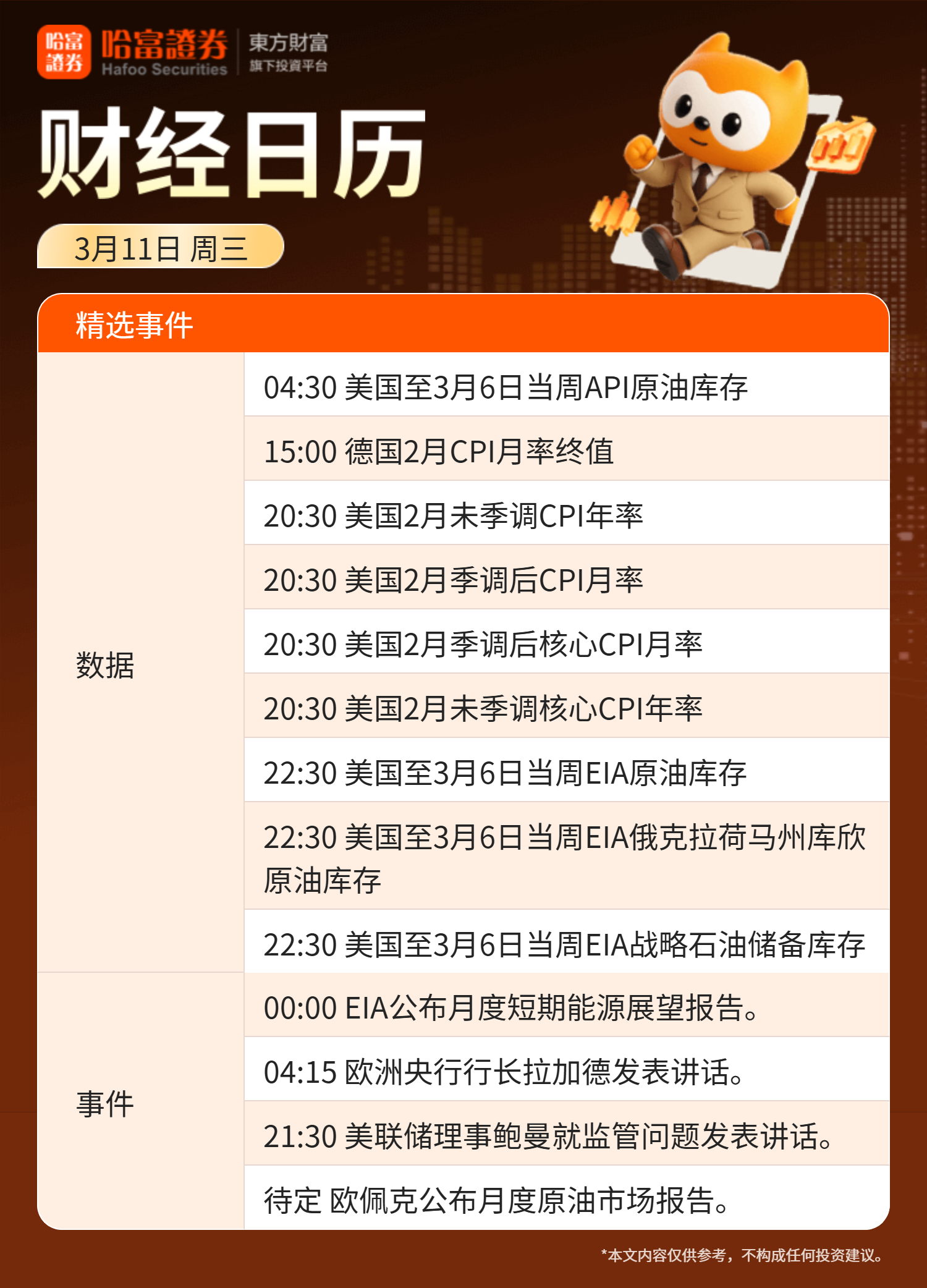 早报丨今晚20:30,美国2月CPI数据来袭!油价“过山车”、美股冲高回落,美国能源部长误发“护航”帖;AI订单推动甲骨文业绩超预期,夜盘续涨超8%;蔚来首次实现季度盈利