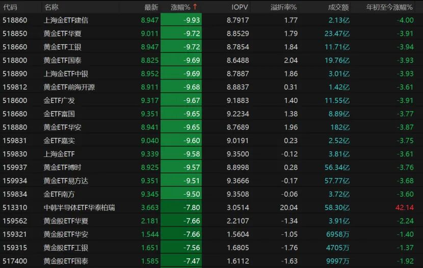 尽管避险情绪升温,但黄金股和黄金ETF均大跌。近期COMEX黄金期货持续走低,截至发稿跌近7%报4258.5美元/盎司。