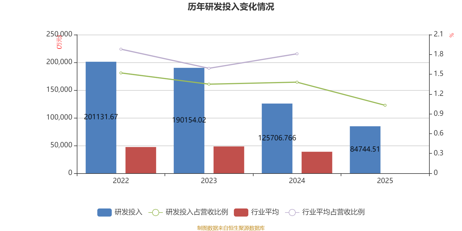 2025年全年,公司研发投入金额为8.47亿元,同比下降32.59%;研发投入占营业收入比例为1.03%,相比上年同期下降0.35个百分点。此外,公司全年研发投入资本化率为0%。