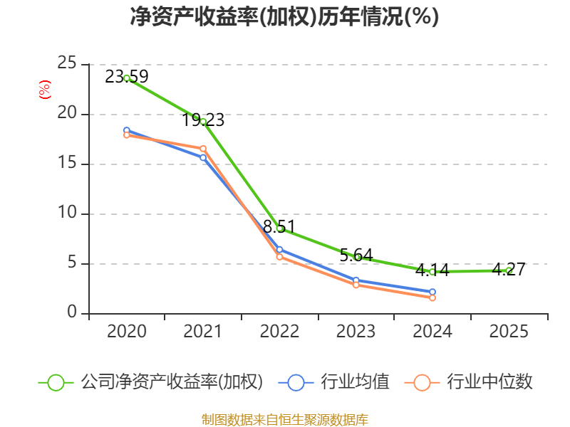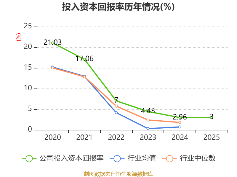 数据显示,2025年公司加权平均净资产收益率为4.27%,较上年同期上升0.13个百分点。公司2025年投入资本回报率为3%,较上年同期上升0.04个百分点。