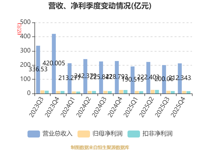 年报显示,2025年末的公司十大流通股东中,新进股东为国信证券股份有限公司,取代了三季度末的全国社保基金一一三组合。在具体持股比例上,香港中央结算(代理人)有限公司持股有所上升,香港中央结算有限公司、华泰柏瑞沪深300交易型开放式指数证券投资基金、易方达沪深300交易型开放式指数发起式证券投资基金、华夏沪深300交易型开放式指数证券投资基金持股有所下降。