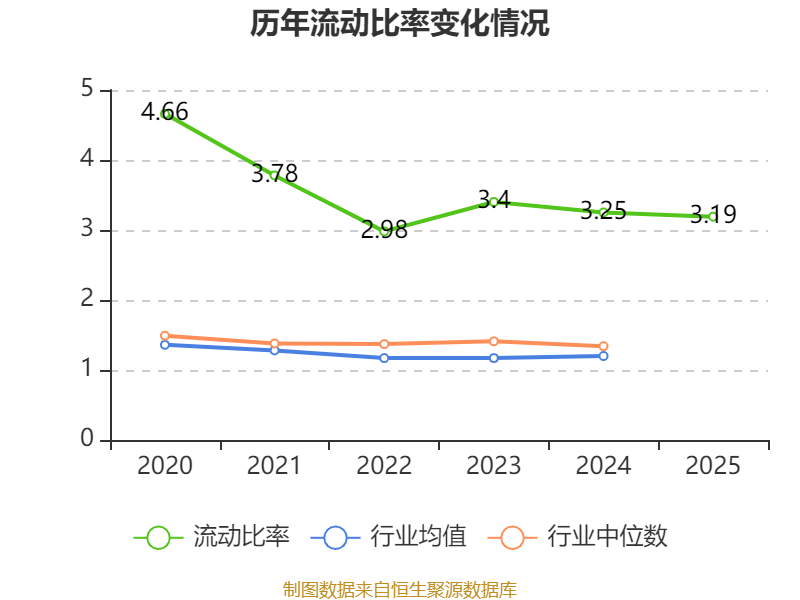 2025年,公司流动比率为3.19,速动比率为2.92。