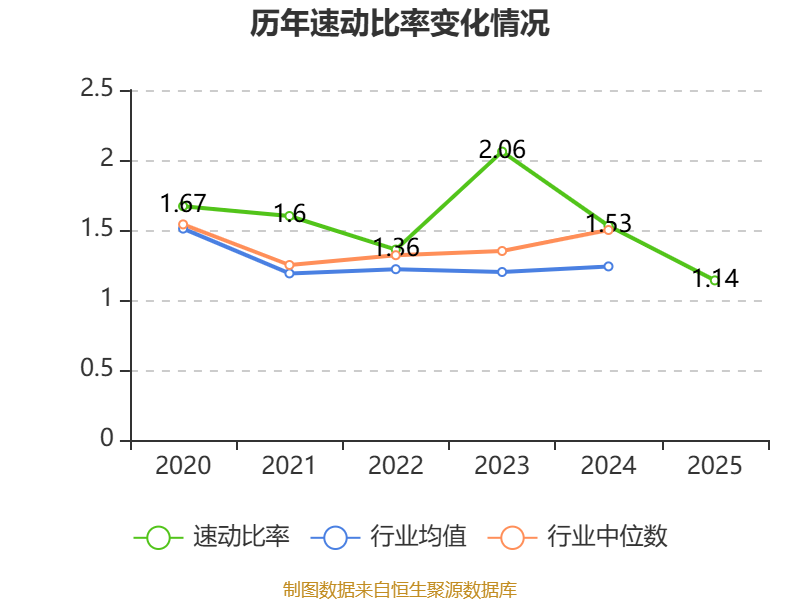 2025年,公司流动比率为1.5,速动比率为1.14。