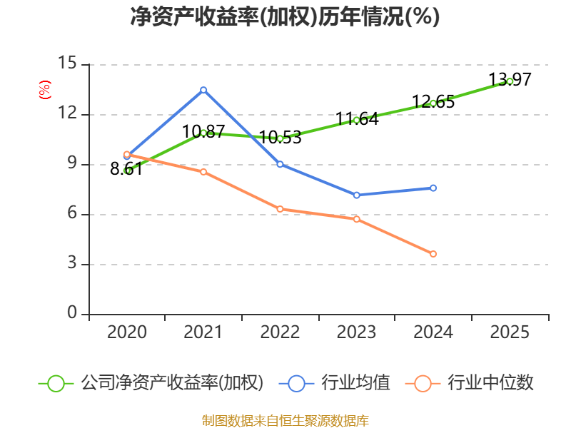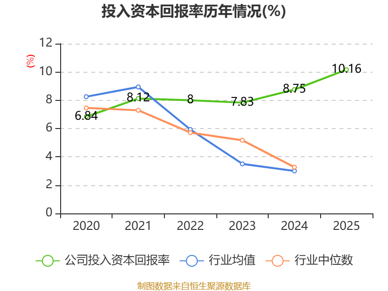 数据显示,2025年公司加权平均净资产收益率为13.97%,较上年同期上升1.32个百分点。公司2025年投入资本回报率为10.16%,较上年同期上升1.41个百分点。