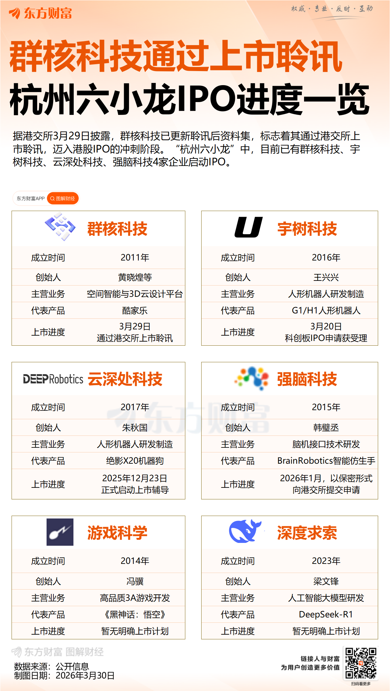 在“杭州六小龙”当中,群核科技是首家申报IPO的企业,此后宇树科技、云深处科技相继官宣开启IPO征程。