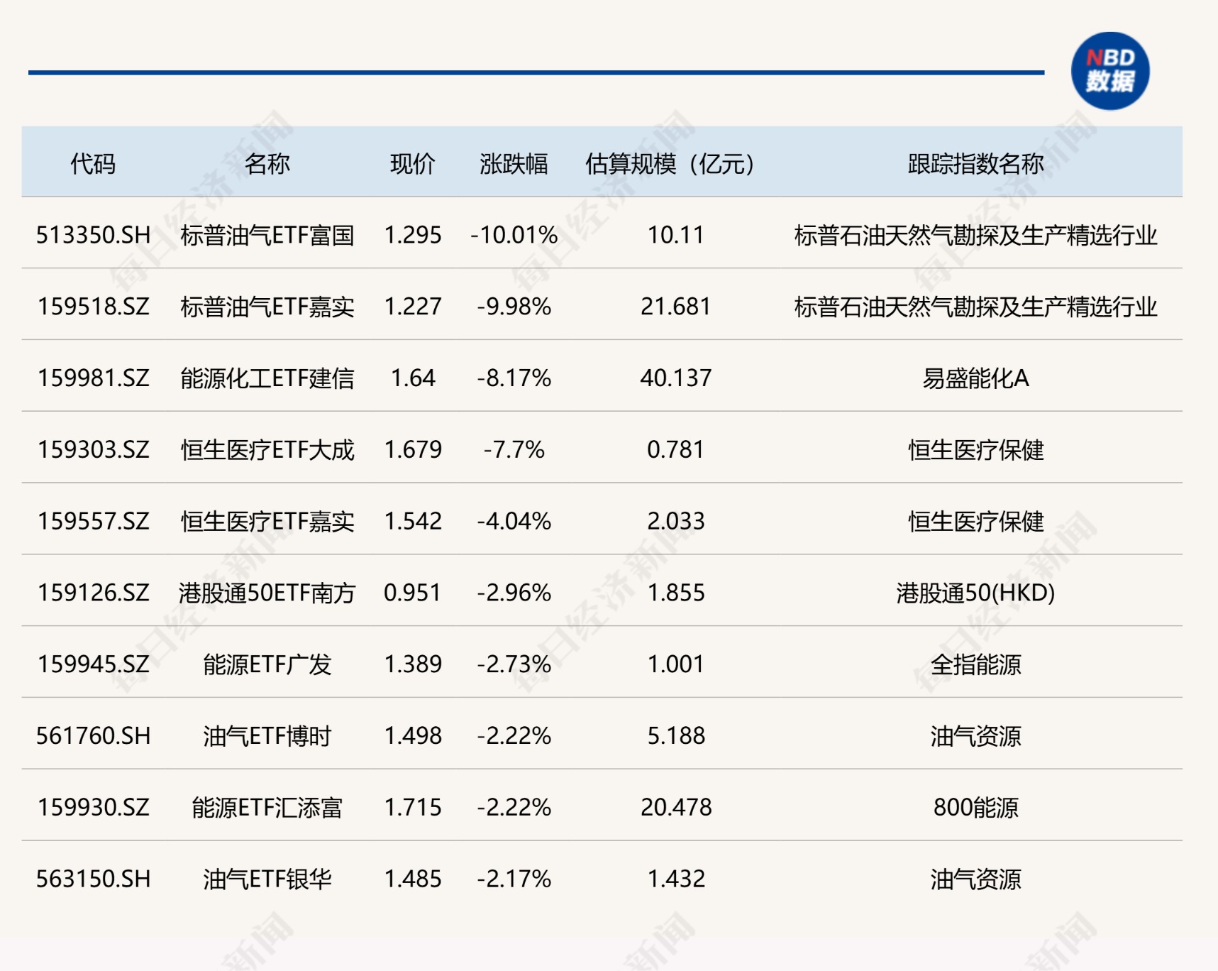 ETF今日收评 | 多只ETF涨超10% 标普油气ETF跌停