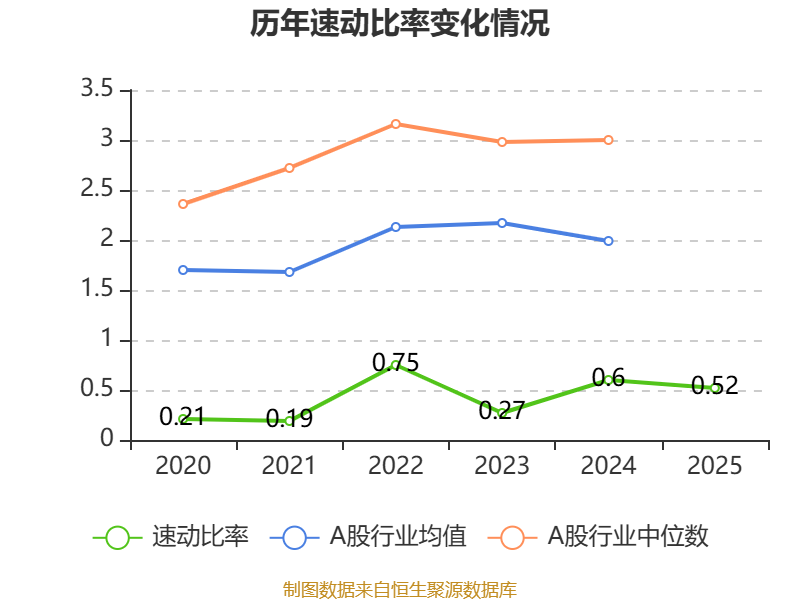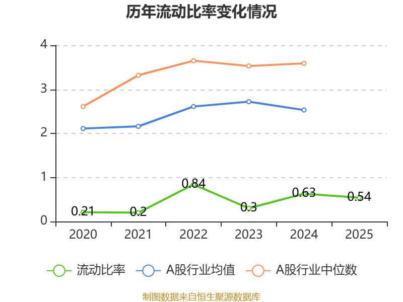 2025年,公司流动比率为0.54,速动比率为0.52。