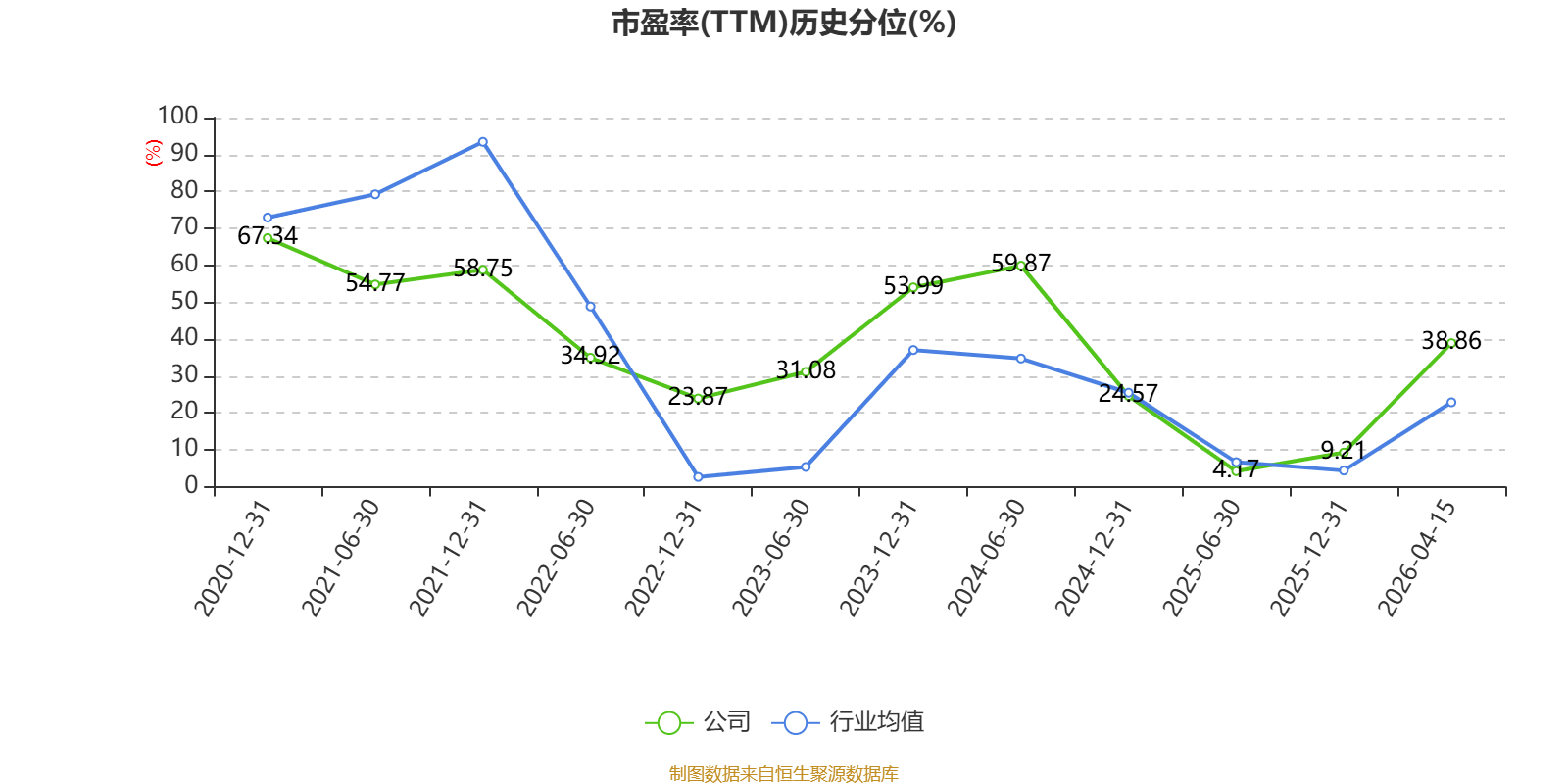 市盈率、市净率为负时,不显示当期分位数,会导致折线图中断。