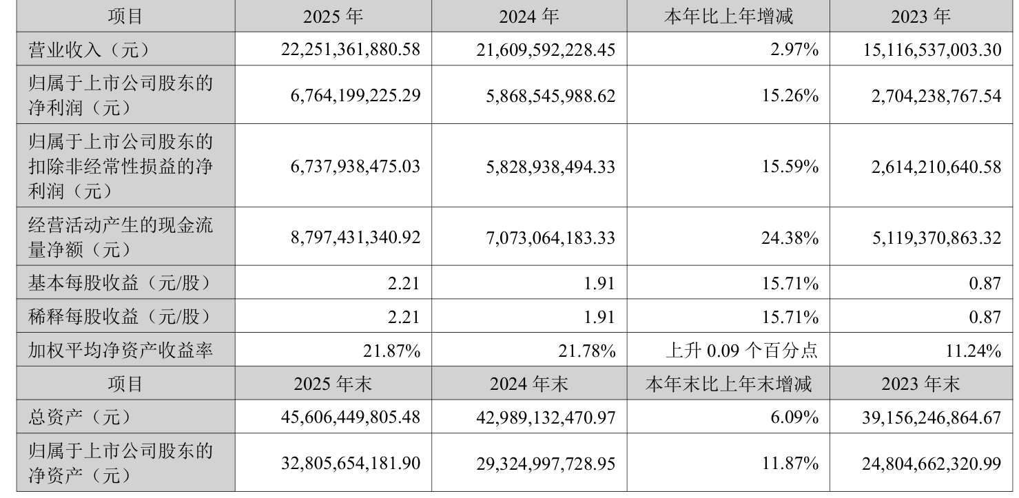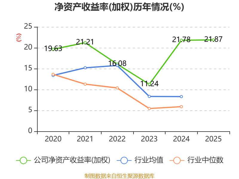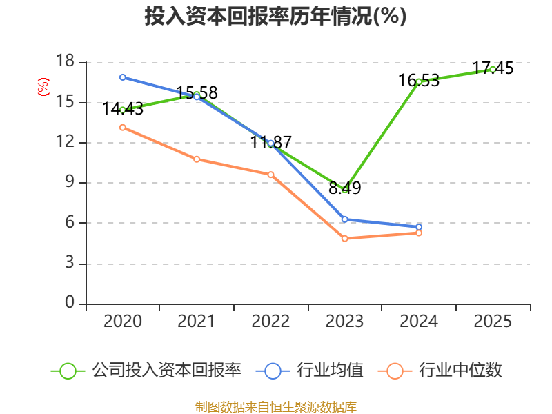 数据显示,2025年公司加权平均净资产收益率为21.87%,较上年同期上升0.09个百分点。公司2025年投入资本回报率为17.45%,较上年同期上升0.92个百分点。