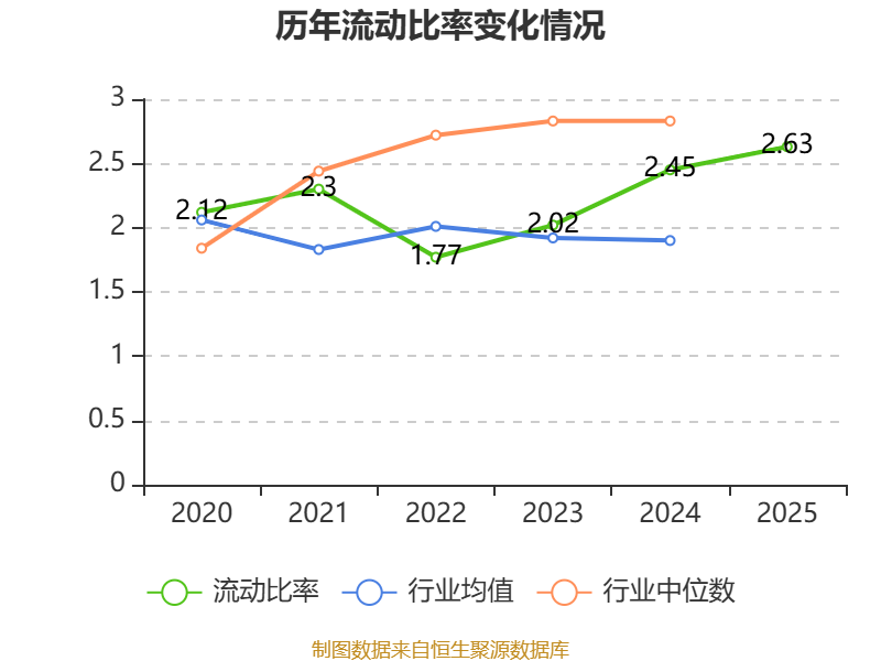 2025年,公司流动比率为2.63,速动比率为2。