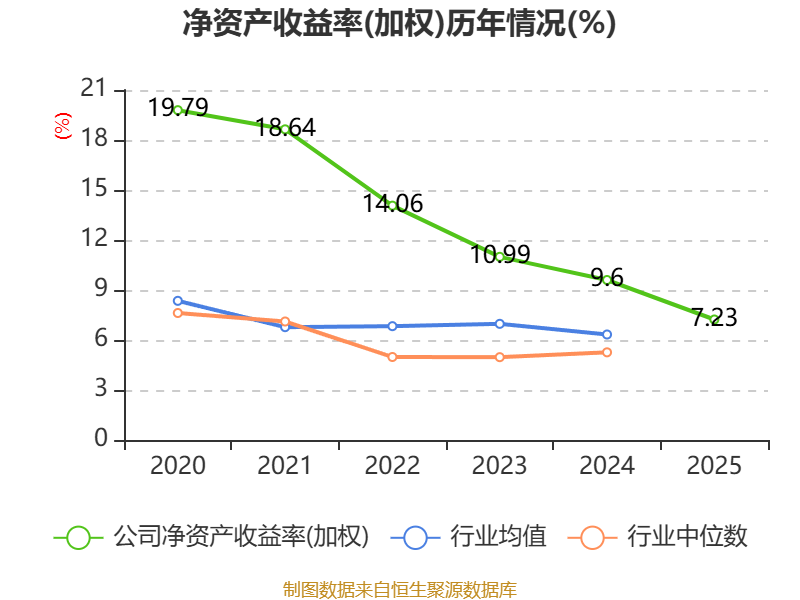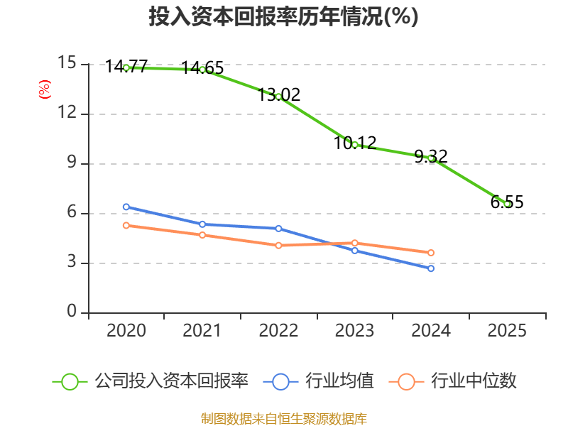 数据显示,2025年公司加权平均净资产收益率为7.23%,较上年同期下降2.37个百分点。公司2025年投入资本回报率为6.55%,较上年同期下降2.77个百分点。