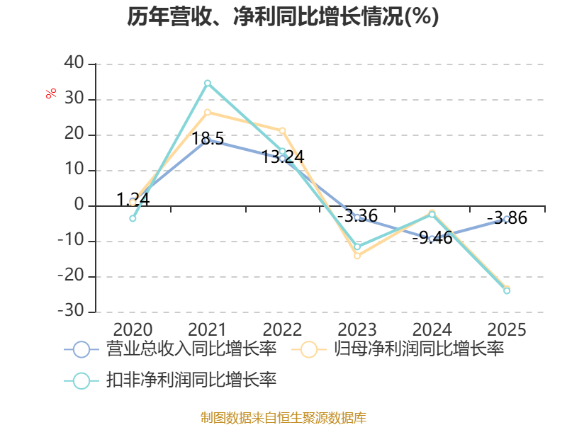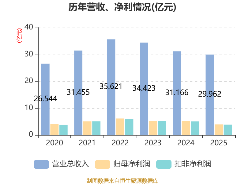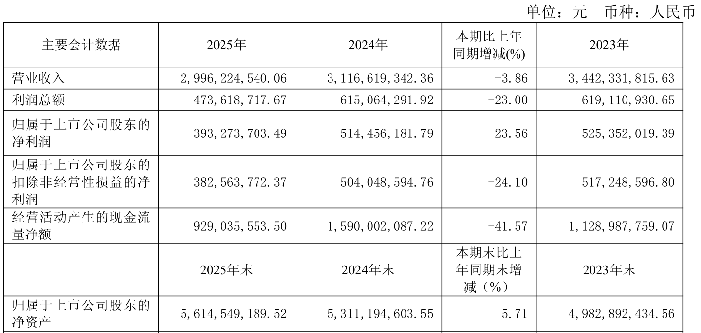 中证智能财讯涪陵电力(600452)4月17日披露2025年年度报告。2025年,公司实现营业总收入29.96亿元,同比下降3.86%;归母净利润3.93亿元,同比下降23.56%;扣非净利润3.83亿元,同比下降24.10%;经营活动产生的现金流量净额为9.29亿元,同比下降41.57%;报告期内,涪陵电力基本每股收益为0.26元,加权平均净资产收益率为7.23%。公司2025年度分配预案为:拟向全体股东每10股派现0.68元(含税)。