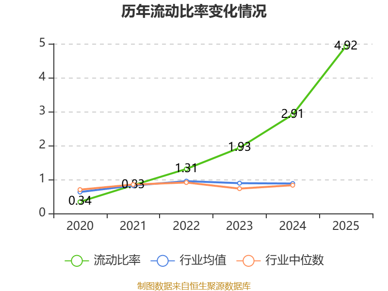2025年,公司流动比率为4.92,速动比率为4.92。