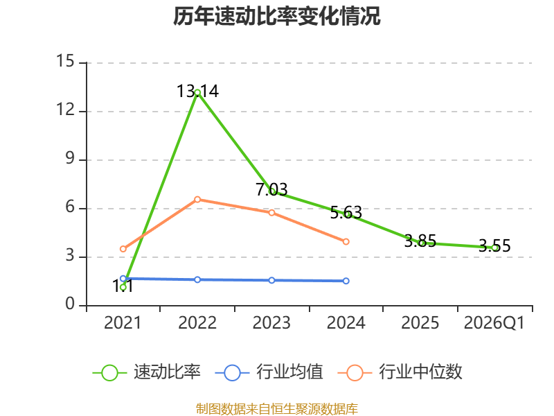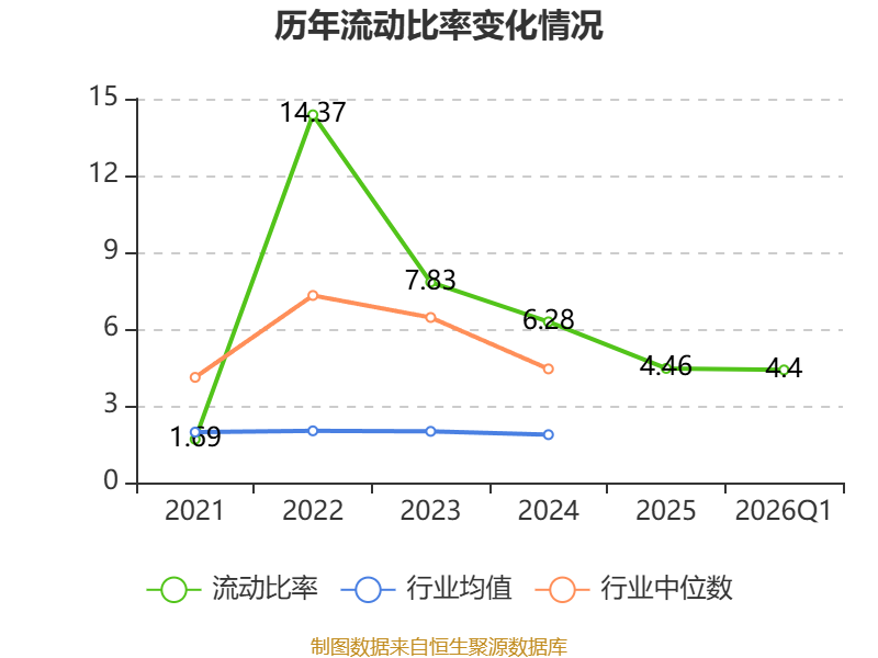 2026年第一季度,公司流动比率为4.4,速动比率为3.55。
