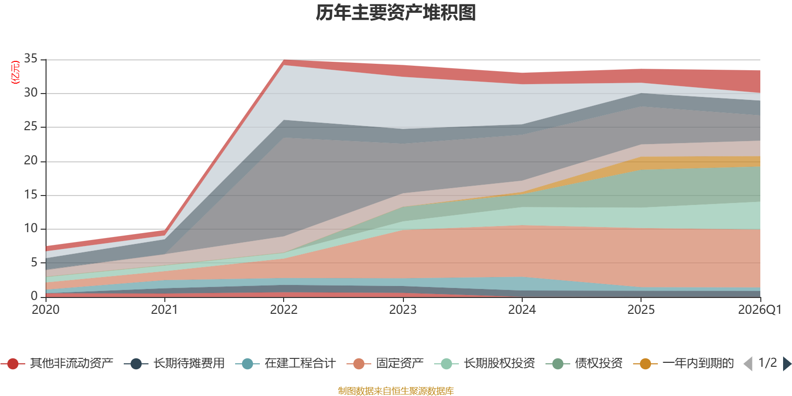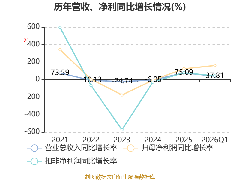 资产重大变化方面,截至2026年一季度末,公司交易性金融资产合计较上年末减少33.09%,占公司总资产比重下降5.43个百分点;长期股权投资较上年末增加35.83%,占公司总资产比重上升3.3个百分点;其他非流动金融资产较上年末增加74.17%,占公司总资产比重上升1.59个百分点;存货较上年末增加27.19%,占公司总资产比重上升1.5个百分点。