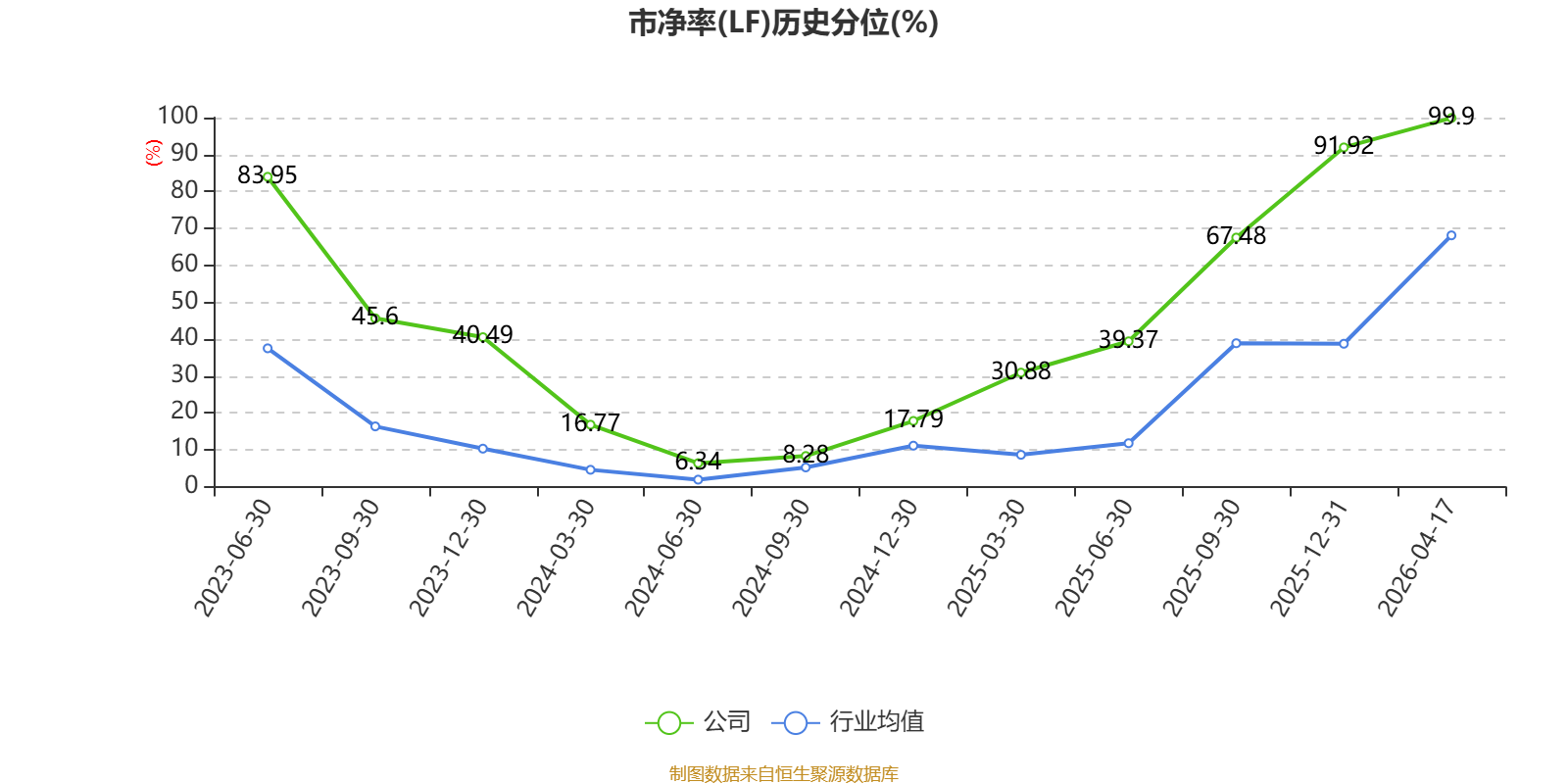 市盈率、市净率为负时,不显示当期分位数,会导致折线图中断。