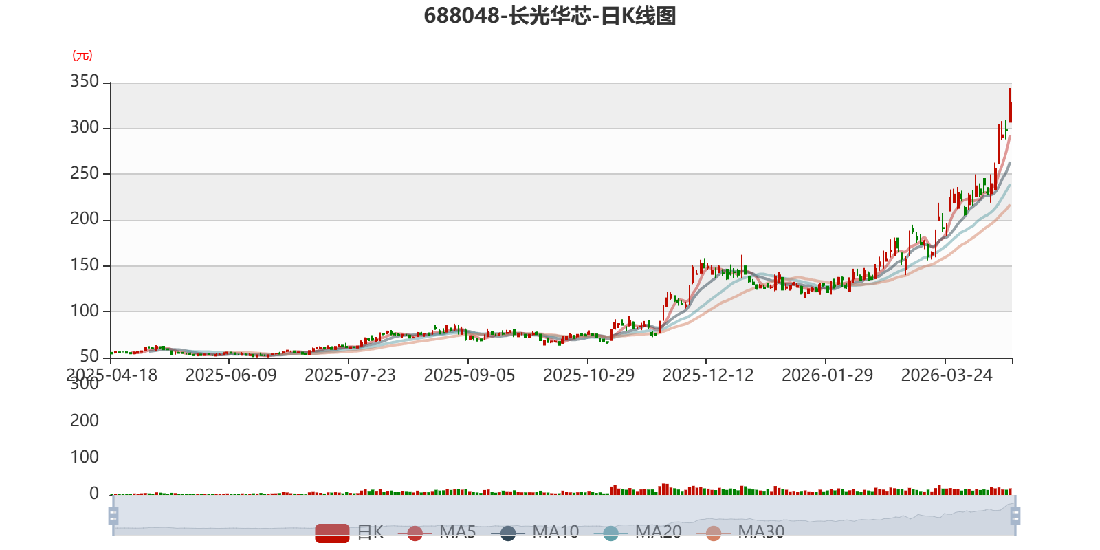 以4月17日收盘价计算,长光华芯目前市盈率(TTM)约为1713.59倍,市净率(LF)约19.19倍,市销率(TTM)约112.71倍。