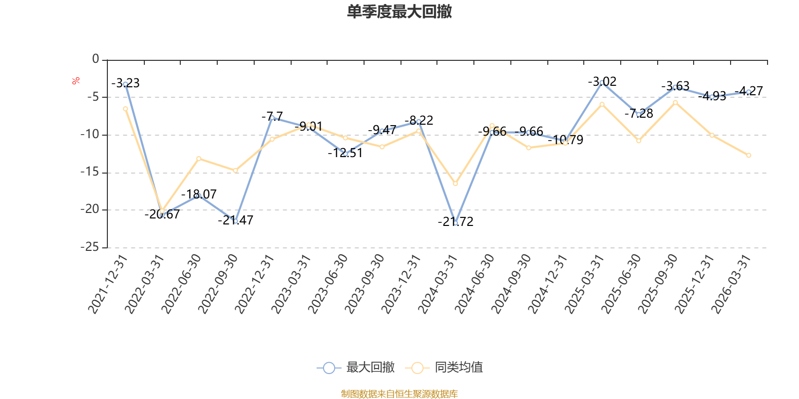 截至4月20日,基金近三年最大回撤为30.49%,同类可比基金排名241/550。单季度最大回撤出现在2024年一季度,为21.72%。