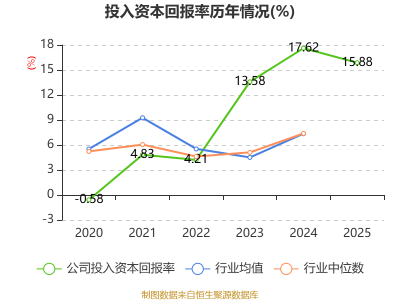 数据显示,2025年公司加权平均净资产收益率为19.6%,较上年同期下降1.68个百分点。公司2025年投入资本回报率为15.88%,较上年同期下降1.74个百分点。
