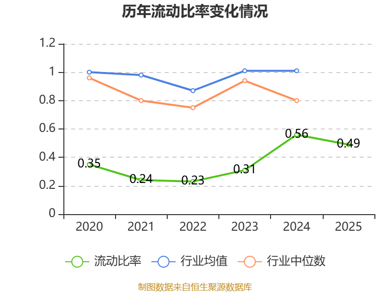 2025年,公司流动比率为0.49,速动比率为0.36。