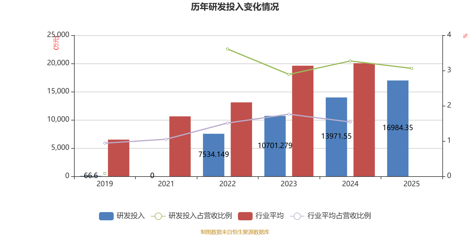 2025年全年,公司研发投入金额为1.7亿元,同比增长21.56%;研发投入占营业收入比例为3.06%,相比上年同期下降0.21个百分点。此外,公司全年研发投入资本化率为0%。