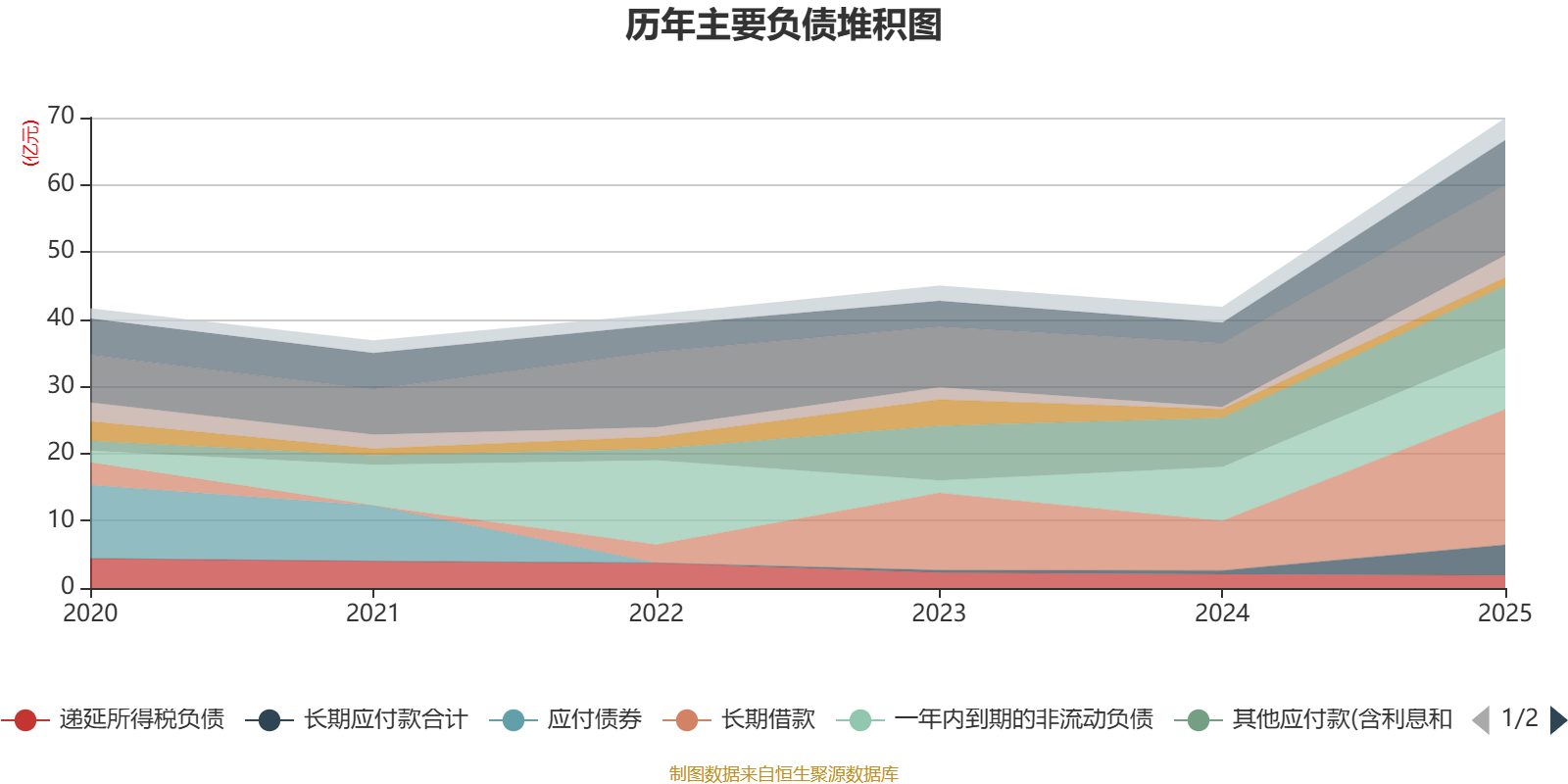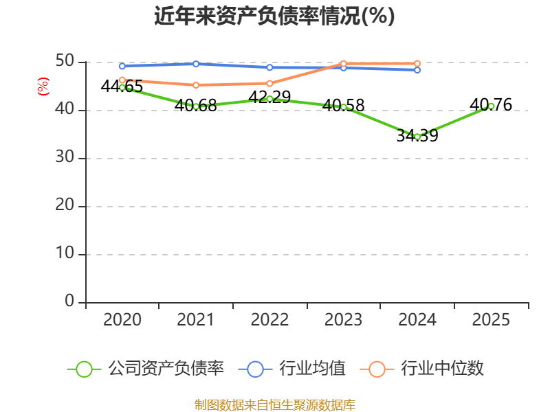 负债重大变化方面,截至2025年末,公司长期借款较上年末增加172.47%,占公司总资产比重上升5.67个百分点;长期应付款合计较上年末增加686.05%,占公司总资产比重上升2.18个百分点;应付票据及应付账款较上年末增加10.39%,占公司总资产比重下降1.69个百分点;合同负债较上年末增加856.67%,占公司总资产比重上升1.65个百分点。
