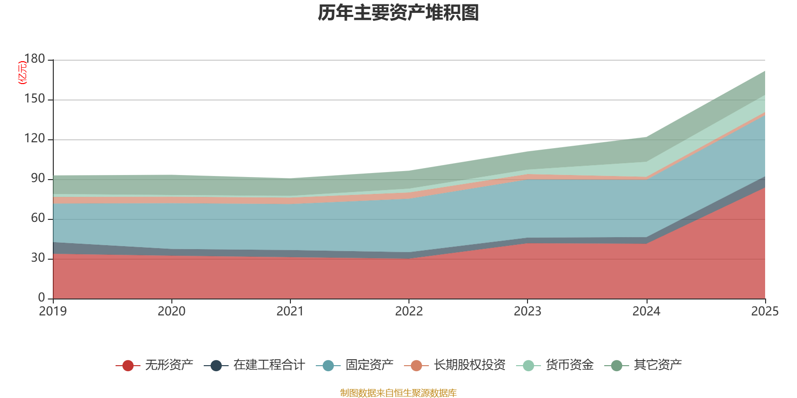 资产重大变化方面,截至2025年末,公司无形资产较上年末增加102.88%,占公司总资产比重上升14.88个百分点;固定资产较上年末增加6.51%,占公司总资产比重下降8.7个百分点;其他非流动资产较上年末减少52.15%,占公司总资产比重下降2.14个百分点;货币资金较上年末增加13.58%,占公司总资产比重下降1.82个百分点。