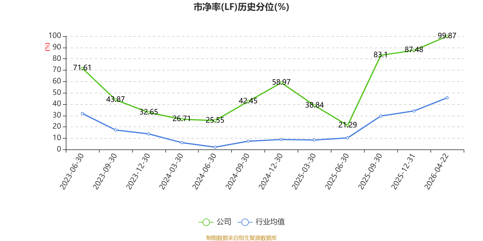 市盈率、市净率为负时,不显示当期分位数,会导致折线图中断。