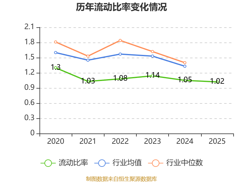 2025年,公司流动比率为1.02,速动比率为0.84。