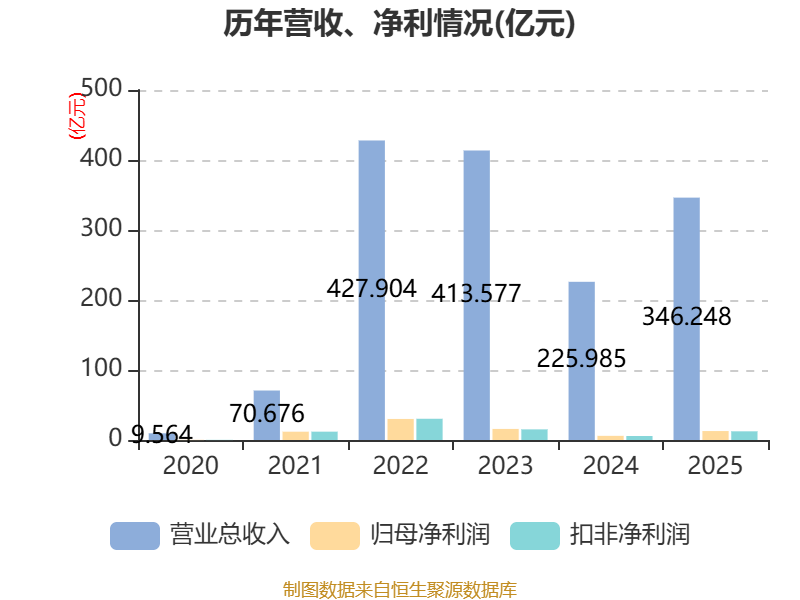 中证智能财讯湖南裕能(301358)4月23日披露2025年年度报告。2025年,公司实现营业总收入346.25亿元,同比增长53.22%;归母净利润12.77亿元,同比增长115.18%;扣非净利润12.41亿元,同比增长117.54%;经营活动产生的现金流量净额为-15.46亿元,上年同期为-10.42亿元;报告期内,湖南裕能基本每股收益为1.68元,加权平均净资产收益率为10.45%。公司2025年度分配预案为:拟向全体股东每10股派现3.56元(含税)。