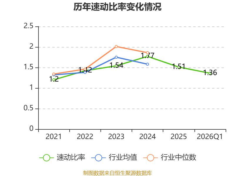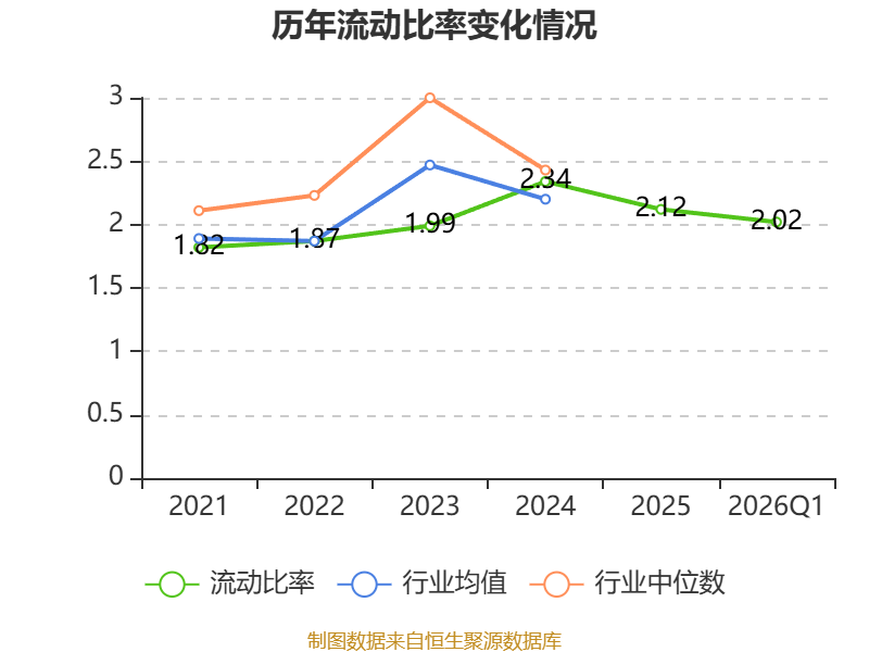 2026年第一季度,公司流动比率为2.02,速动比率为1.36。