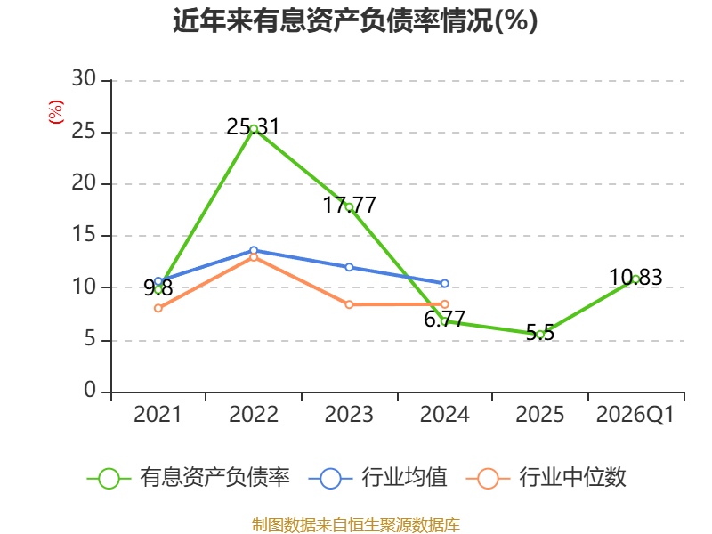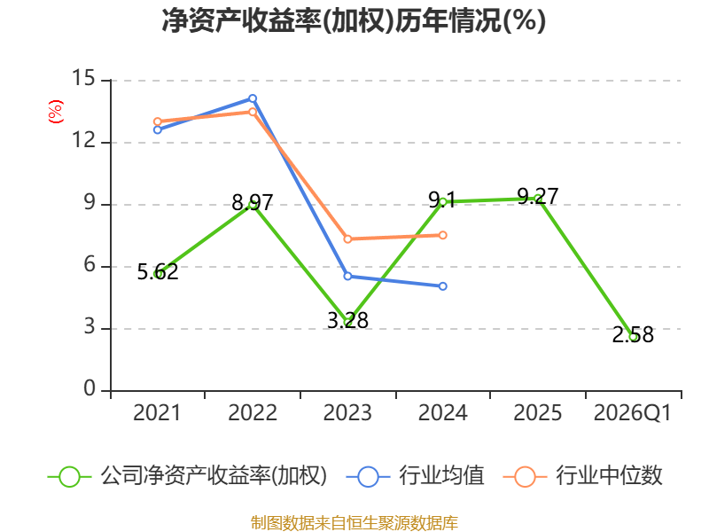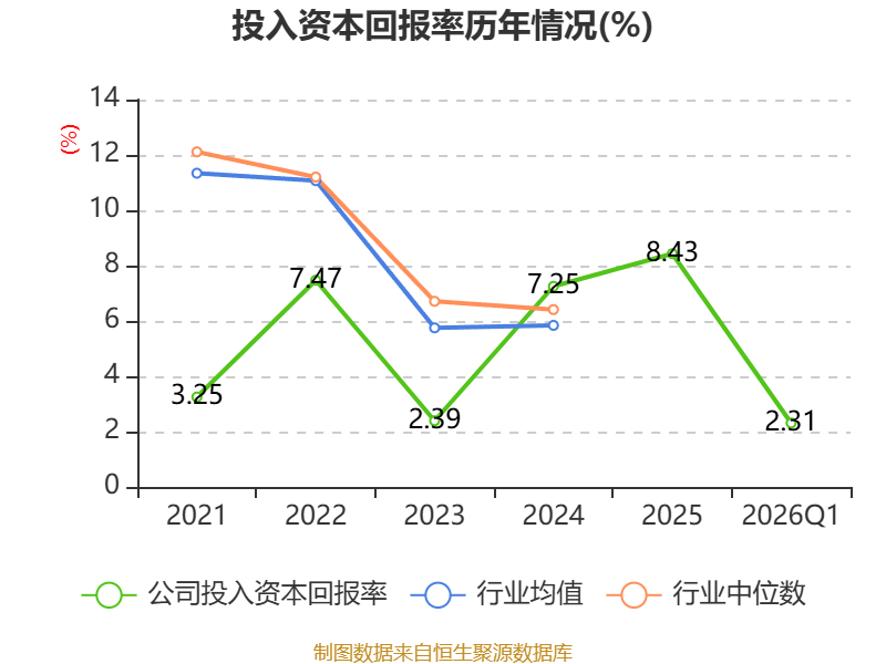 盈利能力方面, 2026年一季度公司加权平均净资产收益率为2.58%,同比上升0.05个百分点。公司2026年第一季度投入资本回报率为2.31%,较上年同期下降0.06个百分点。