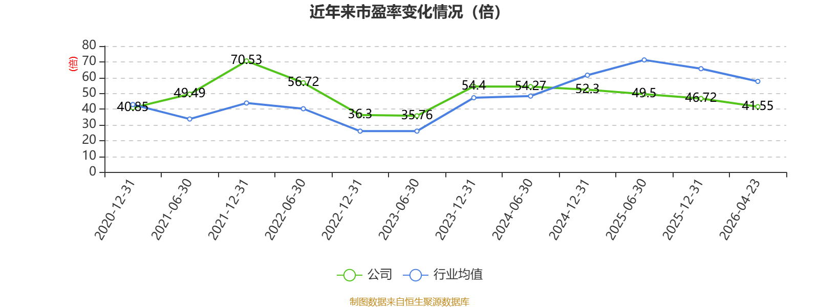 以4月23日收盘价计算,英洛华目前市盈率(TTM)约为41.55倍,市净率(LF)约3.83倍,市销率(TTM)约2.59倍。