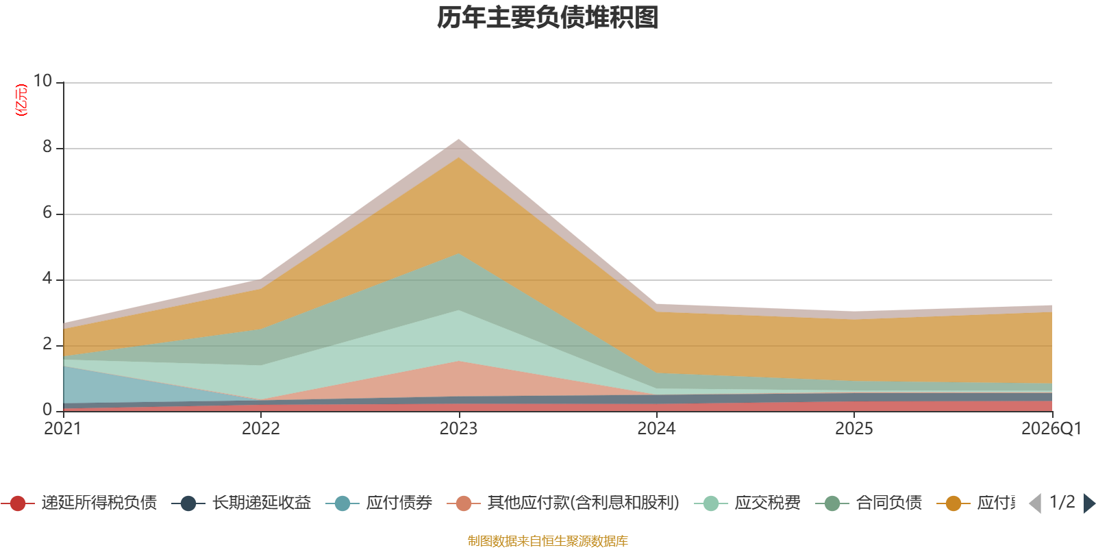负债重大变化方面,截至2026年一季度末,公司应付票据及应付账款较上年末增加16.31%,占公司总资产比重上升0.46个百分点;合同负债较上年末减少24.19%,占公司总资产比重下降0.12个百分点;其他流动负债较上年末减少36.14%,占公司总资产比重下降0.06个百分点;长期递延收益较上年末减少3.52%,占公司总资产比重下降0.02个百分点。