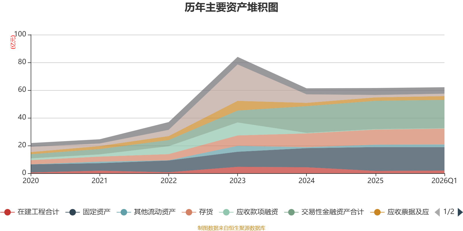 资产重大变化方面,截至2026年一季度末,公司预付款项较上年末减少50.38%,占公司总资产比重下降0.76个百分点;固定资产较上年末减少1.7%,占公司总资产比重下降0.71个百分点;存货较上年末增加4.81%,占公司总资产比重上升0.69个百分点;其他流动资产较上年末增加16.44%,占公司总资产比重上升0.43个百分点。