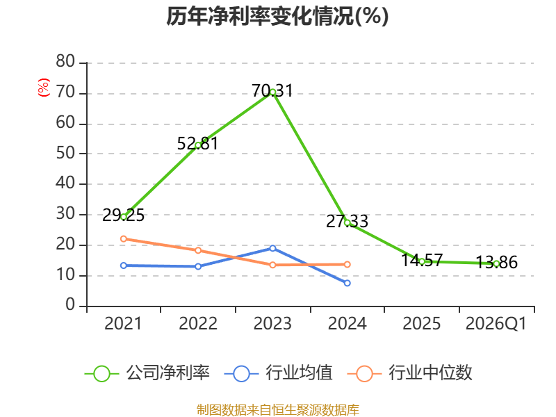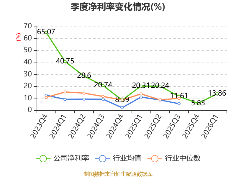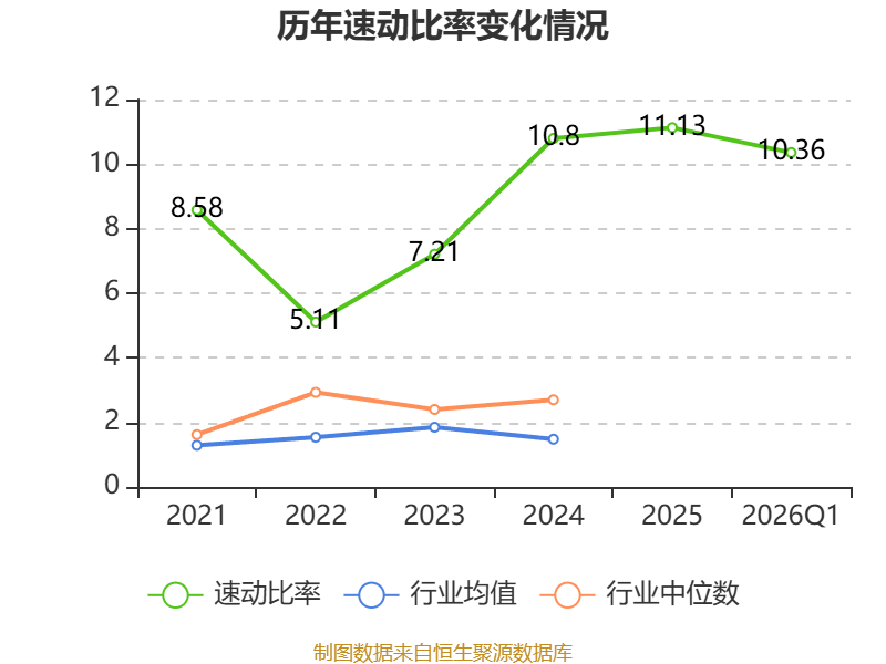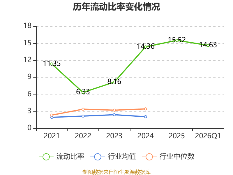 2026年第一季度,公司流动比率为14.63,速动比率为10.36。
