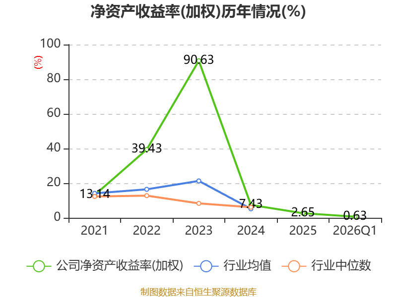 盈利能力方面, 2026年一季度公司加权平均净资产收益率为0.63%,同比下降0.28个百分点。公司2026年第一季度投入资本回报率为0.6%,较上年同期下降0.29个百分点。