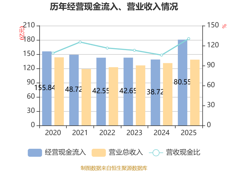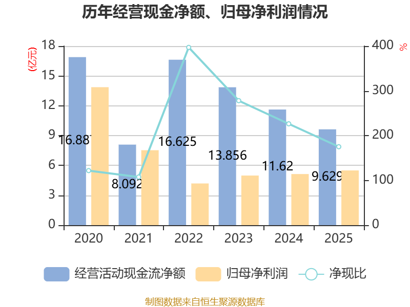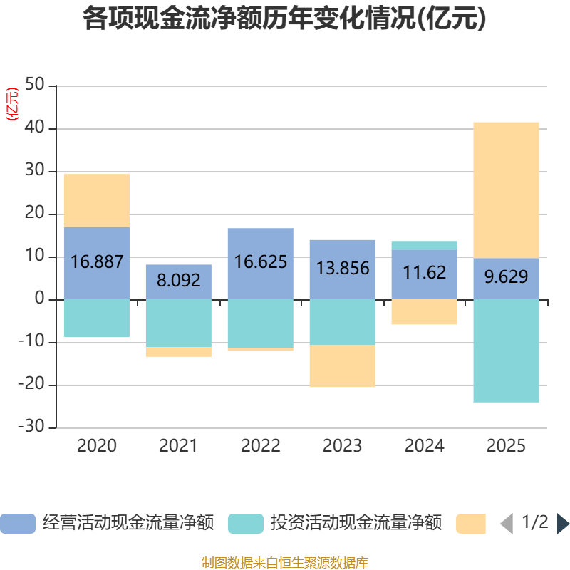 截至2025年,公司经营活动现金流净额为9.63亿元,同比下降17.14%;筹资活动现金流净额31.77亿元,同比增加37.65亿元;投资活动现金流净额-24.12亿元,上年同期为2亿元。