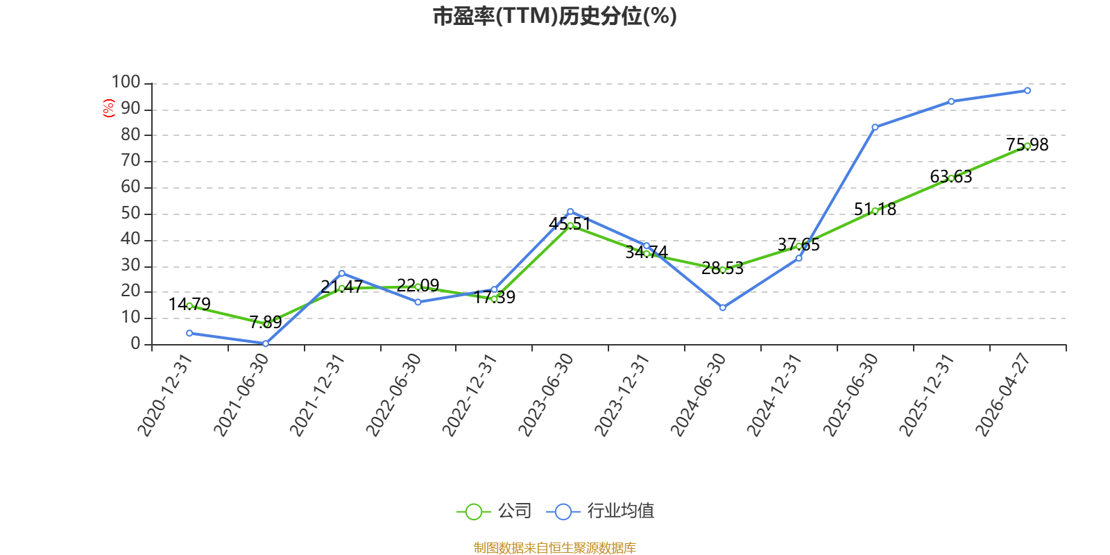 市盈率、市净率为负时,不显示当期分位数,会导致折线图中断。
