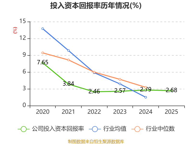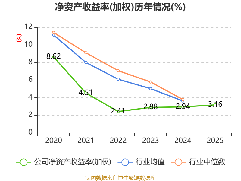 数据显示,2025年公司加权平均净资产收益率为3.16%,较上年同期上升0.22个百分点。公司2025年投入资本回报率为2.68%,较上年同期下降0.11个百分点。