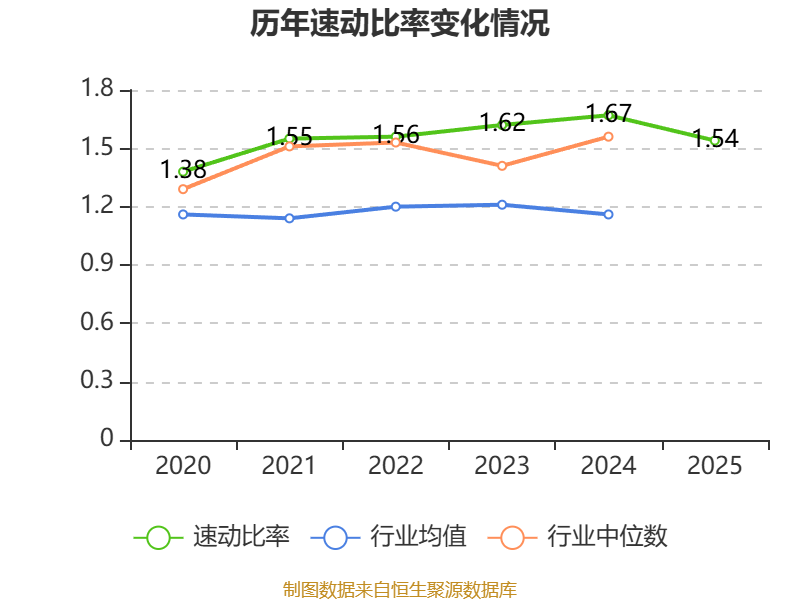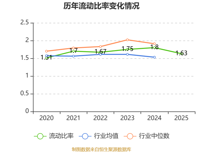 2025年,公司流动比率为1.63,速动比率为1.54。