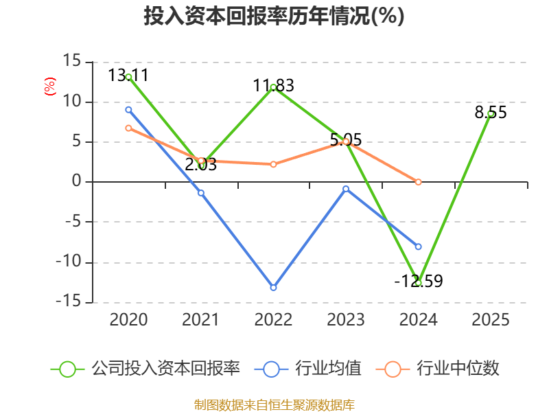 数据显示,2025年公司加权平均净资产收益率为10.61%,较上年同期上升27.13个百分点。公司2025年投入资本回报率为8.55%,较上年同期上升21.14个百分点。