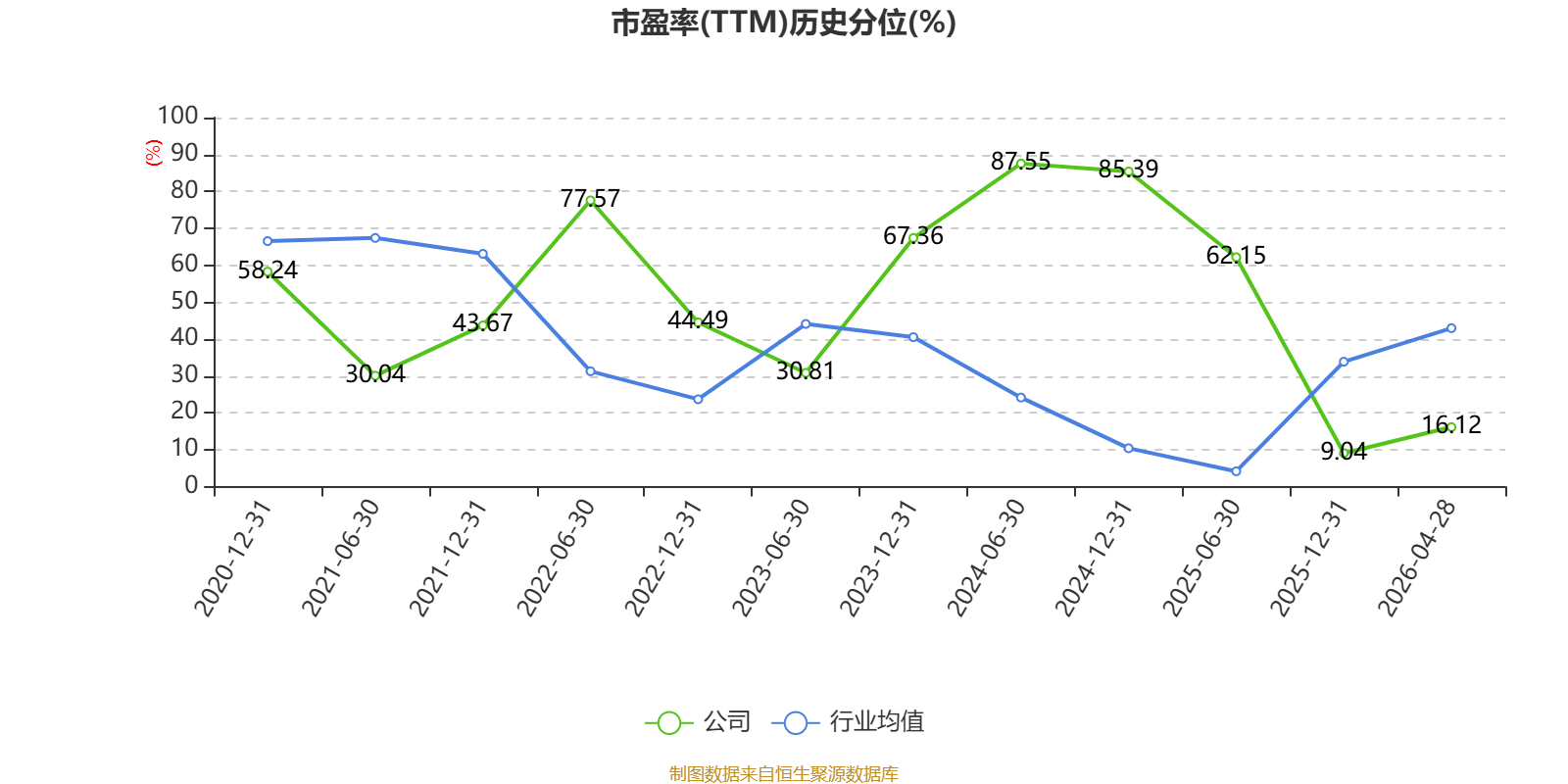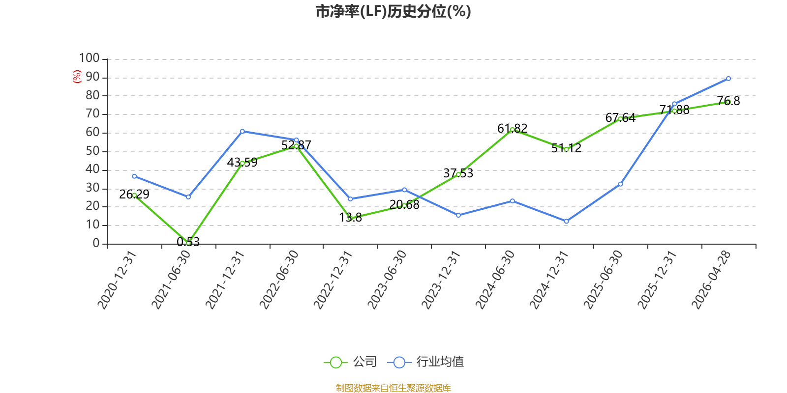 市盈率、市净率为负时,不显示当期分位数,会导致折线图中断。
