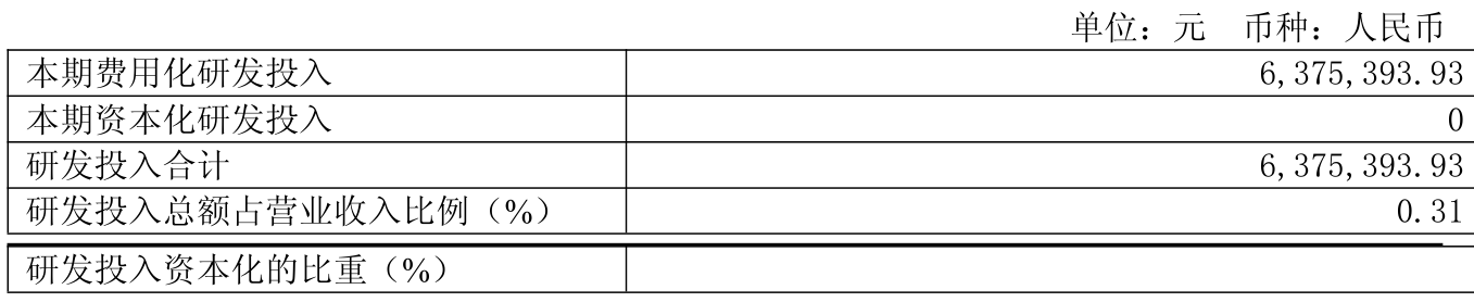 2025年全年,公司研发投入金额为637.54万元,同比下降57.49%;研发投入占营业收入比例为0.31%,相比上年同期下降0.62个百分点。此外,公司全年研发投入资本化率为0%。
