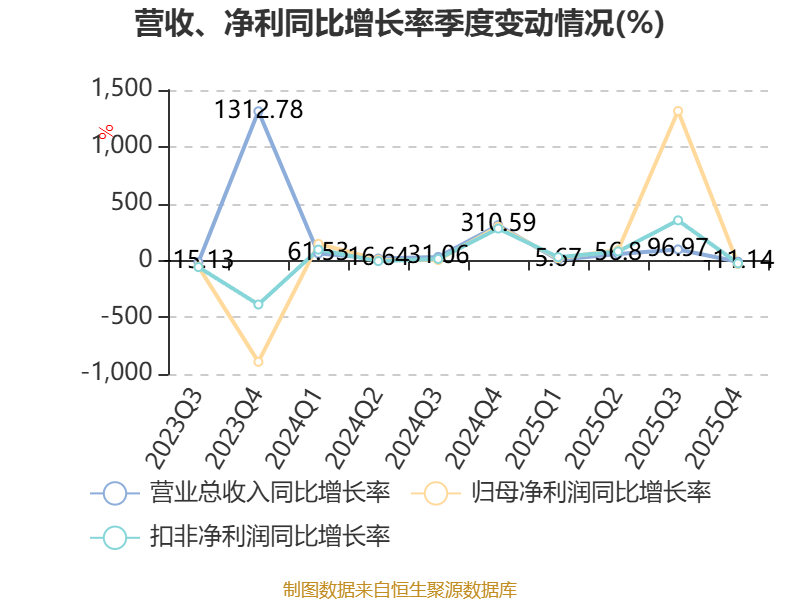 负债重大变化方面,截至2025年末,公司其他应付款(含利息和股利)较上年末增加1848.83%,占公司总资产比重上升8.34个百分点;递延所得税负债较上年末增加515.52%,占公司总资产比重上升4.33个百分点;应付票据及应付账款较上年末增加1.88%,占公司总资产比重下降3.12个百分点;短期借款较上年末增加467.21%,占公司总资产比重上升2.54个百分点。