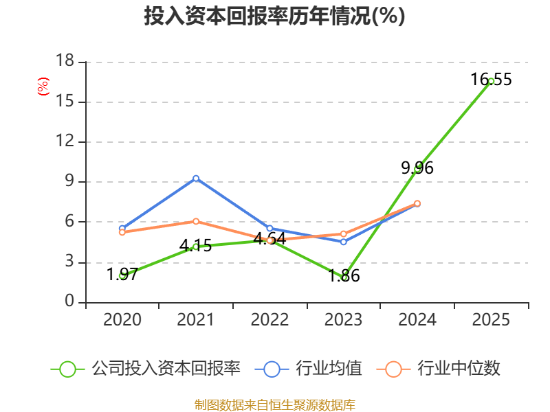 数据显示,2025年公司加权平均净资产收益率为17.61%,较上年同期上升9.36个百分点。公司2025年投入资本回报率为16.55%,较上年同期上升6.59个百分点。