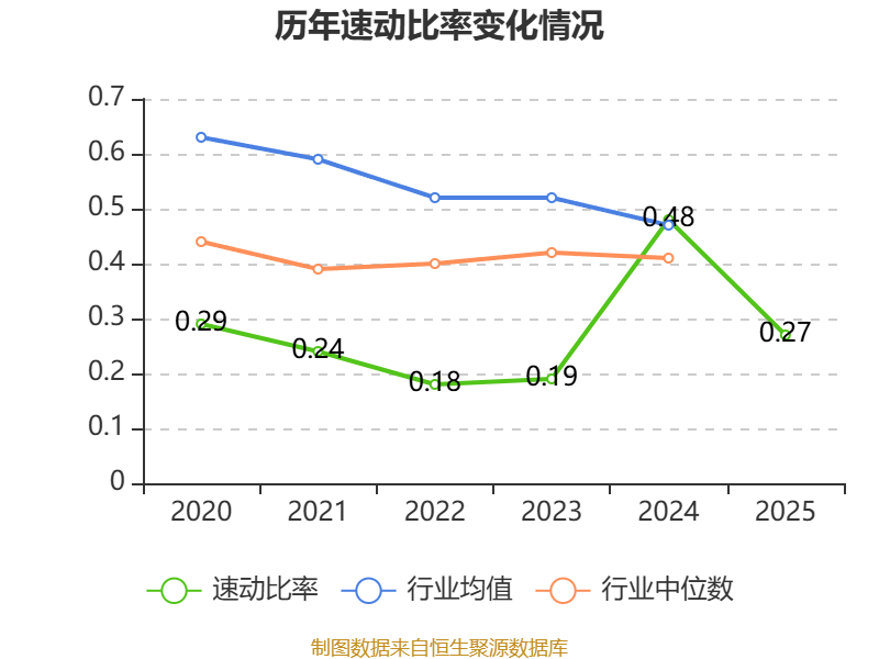 2025年,公司流动比率为0.47,速动比率为0.27。