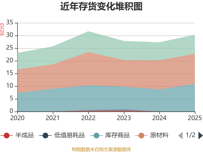 从存货变动来看,截至2025年末,公司存货账面价值为30.26亿元,占净资产的39.78%,较上年末增加2.96亿元。其中,存货跌价准备为1.51亿元,计提比例为4.74%。