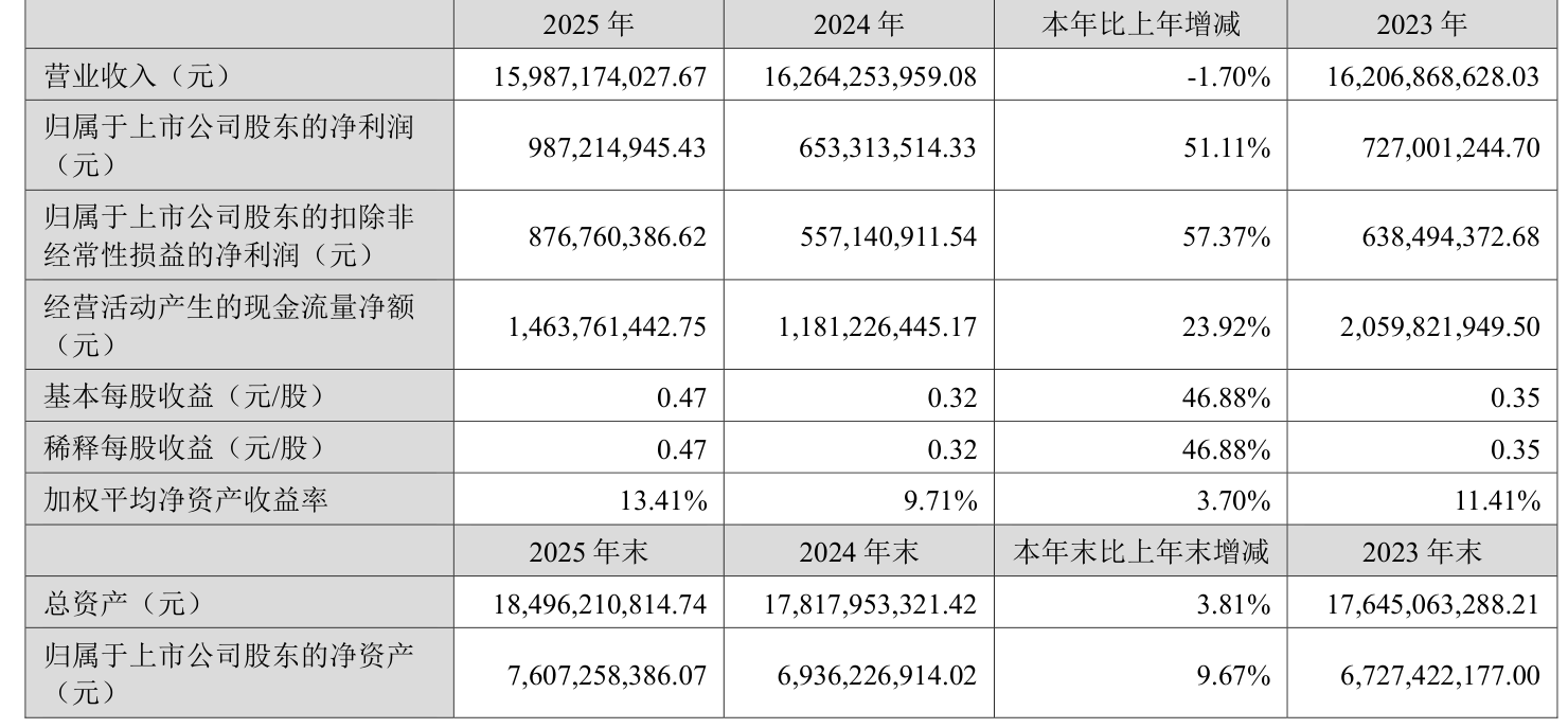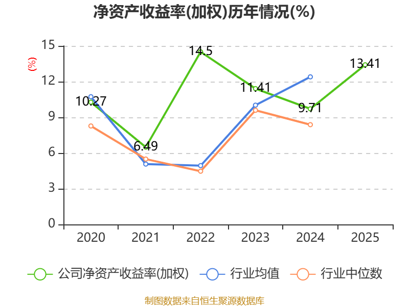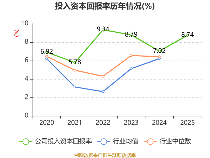 数据显示,2025年公司加权平均净资产收益率为13.41%,较上年同期上升3.7个百分点。公司2025年投入资本回报率为8.74%,较上年同期上升1.72个百分点。